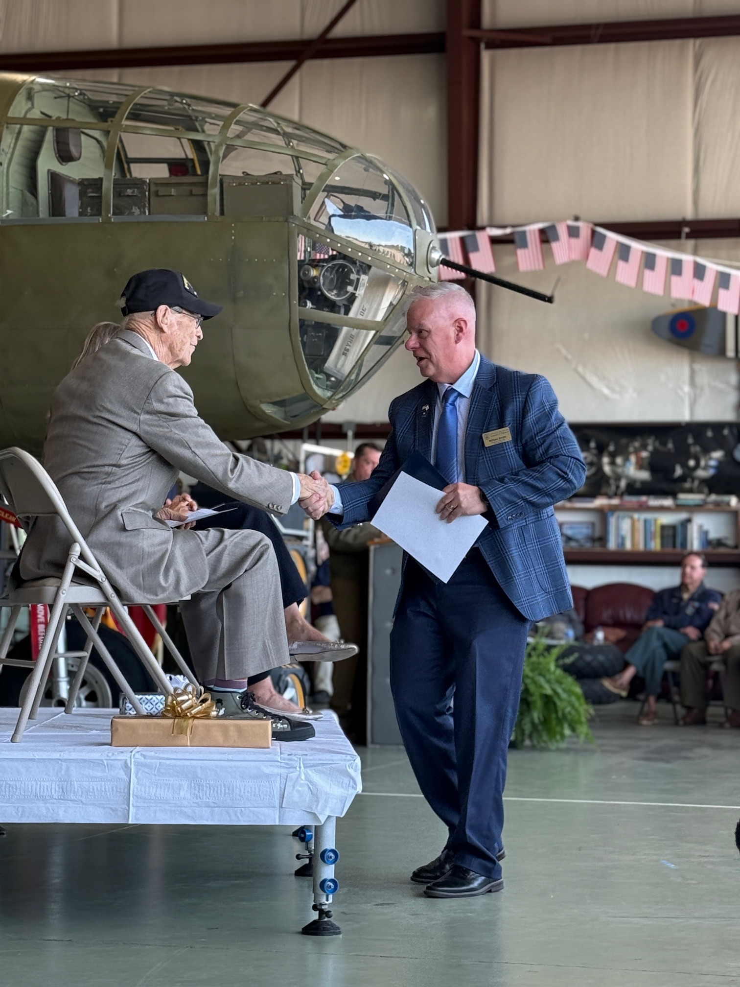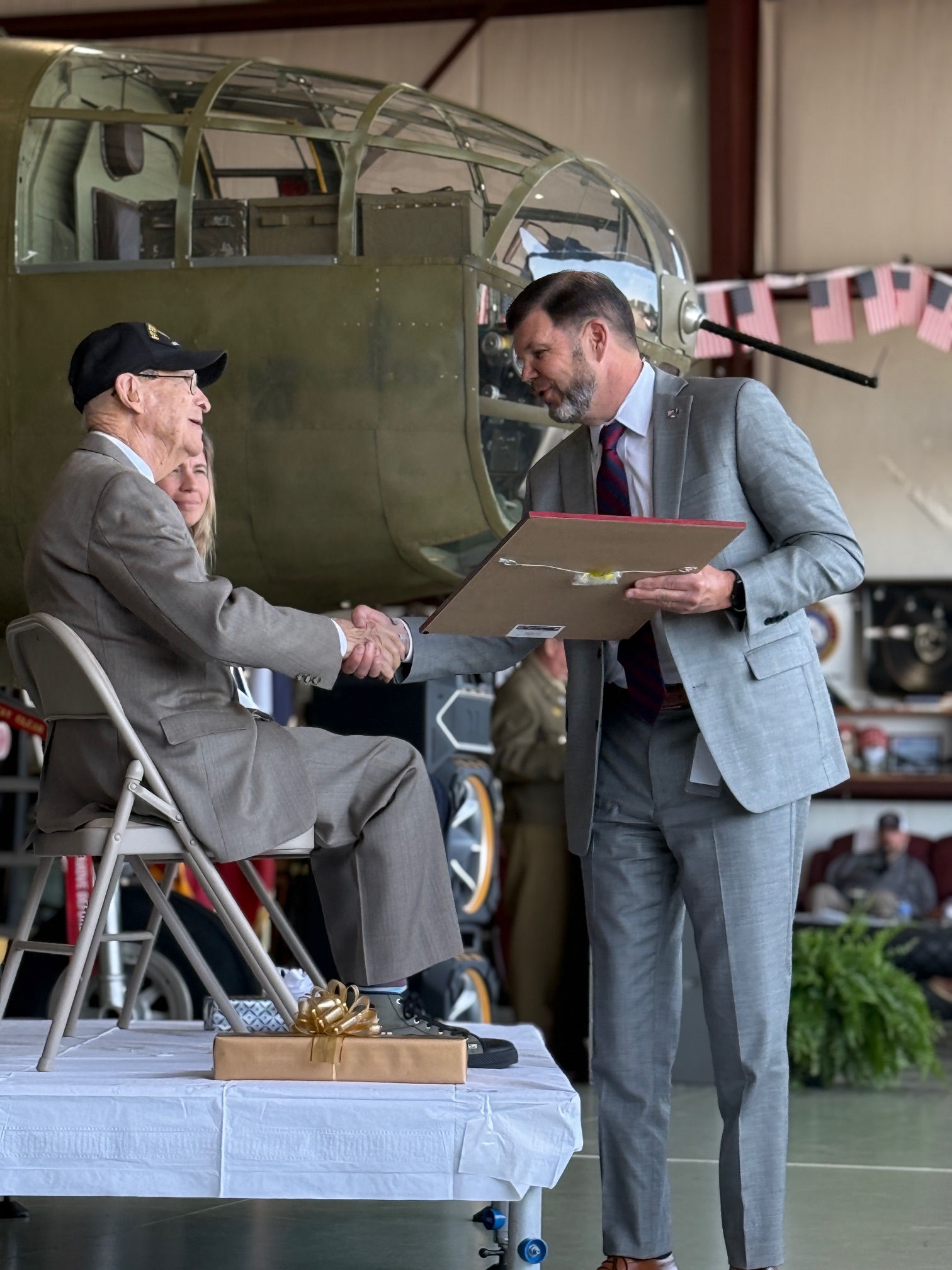 Held at the South Carolina Historic Aviation Foundation, the ceremony recognized Cook’s extraordinary contributions to the Allied victory during World War II.